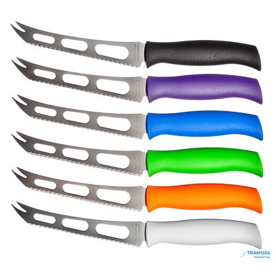 Кончик такого ножа раздвоен, образуя «вилочку», которой удобно подхватывать и раскладывать на тарелке тонкие ломтики сыра. У него прямое лезвие, что бы отрезать ломтики одним движением сверху вниз. В лезвии ножа сделаны углубления (воздушные карманы), что бы избежать прилипания сыра к ножу.
