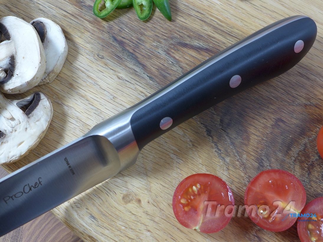 Ножи серии ProChef выполнены из тех же материалов, что и легендарная серия Century. В отличие от Century данные ножи удобнее лежат в руке, имеют более современный и элегантный вид. Отличие линейки Design Collection от обычной продукции Tramontina в том, что все изделия выпускают в ограниченном количестве. Каждый нож упакован в картонную коробку, что прекрасно подойдёт для подарка. Рукоятки ножей выполнены из поликарбоната со стекловолокном, который по сравнение с широко используемым бакелитом, более долговечен, надежен, плюс выдерживает температуру до 200 градусов по Цельсию. Лезвие из стали высочайшего качества особой закалки глубоким охлаждением обеспечивает ножу отличную износостойкость.