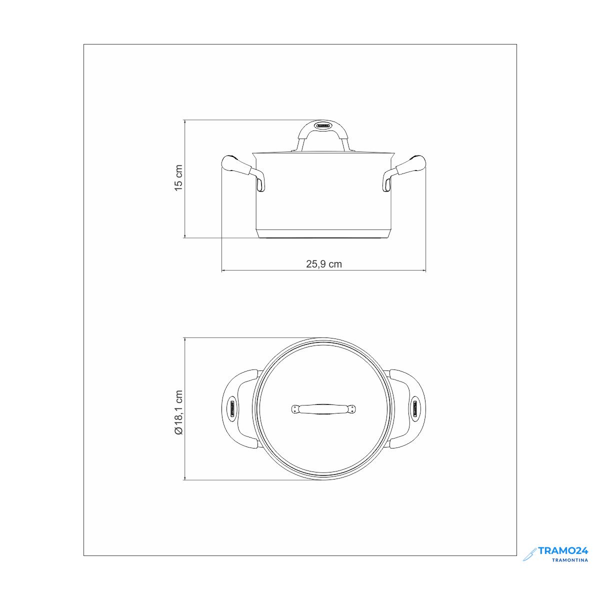 Tramontina Duo Silicone - удобная современная посуда со строгими формами в духе современных дизайнерских трендов. Благодаря сочетанию толстых стенок и толстого дна подходит для приготовления множества блюд.