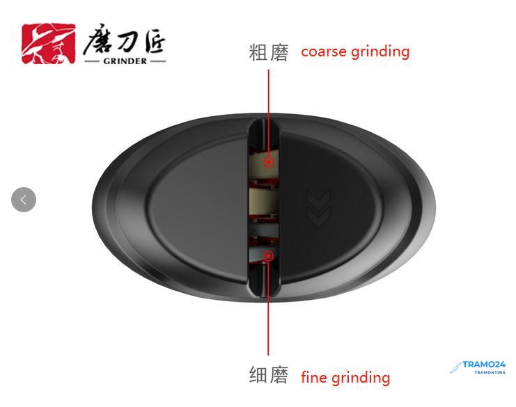 особенность - двойная система заточки, резиновые ножки;