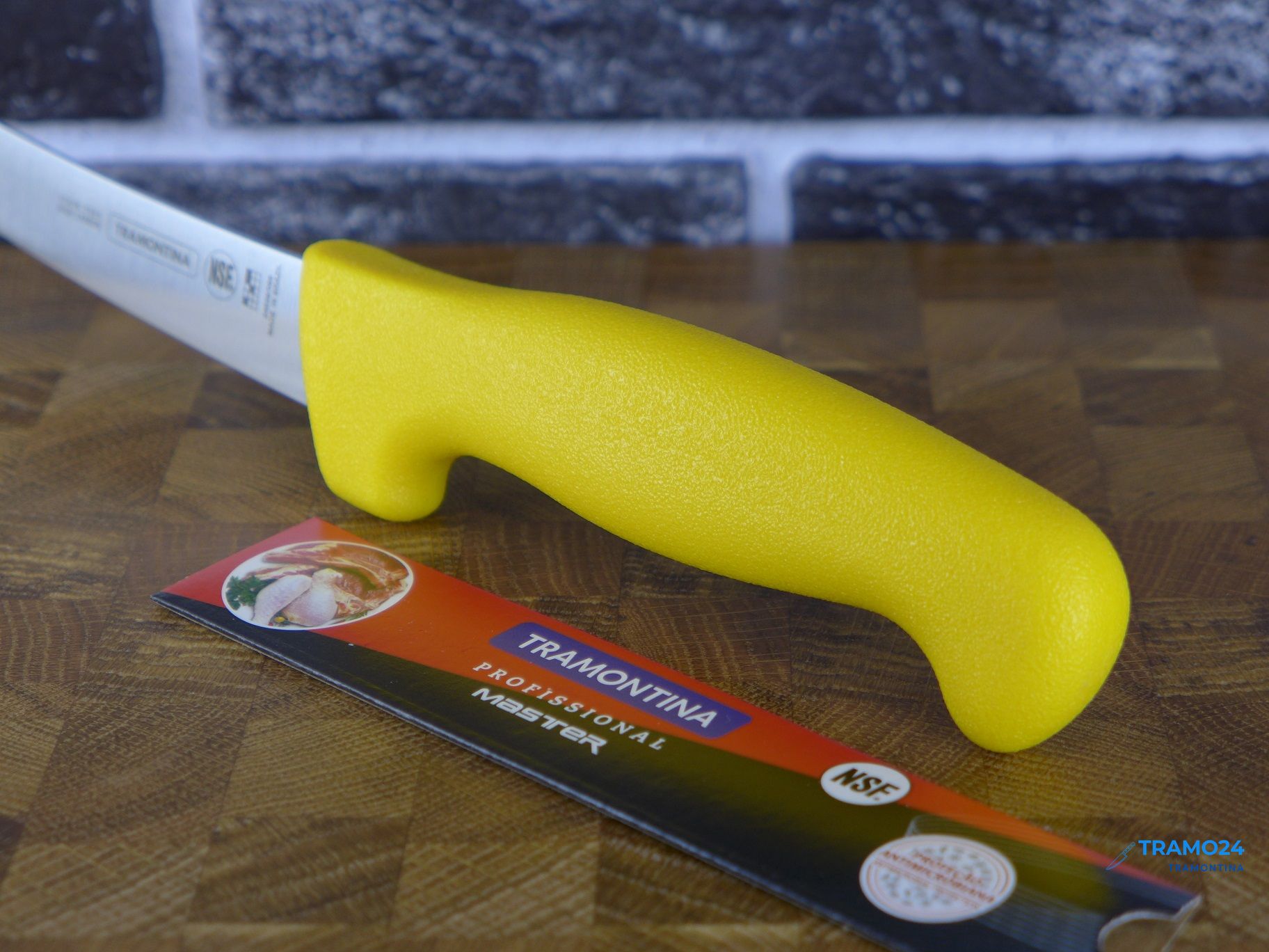 ТипножНазначение ножаразделочныйОбщая длина293 мм.Длина лезвия155 мм.Ширина лезвия (макс.)22 мм.Толщина обуха2 мм.Тип лезвия и заточкиПрямое, двухстороннееМатериал лезвиянержавеющая стальМарка сталиDIN 1.4110Твердость клинка54.56 HRCМатериал рукоятипластикЦвет рукоятижелтыйВес93 гр.УпаковкаКартонный чехол на лезвиеАнтибактериальное покрытиеестьМытьё в посудомоечной машинеестьПроизводительTramontinaСтрана производстваБразилия